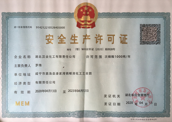 工廠地址:湖北省嘉魚縣潘家灣鎮(zhèn)畈湖化工工業(yè)園